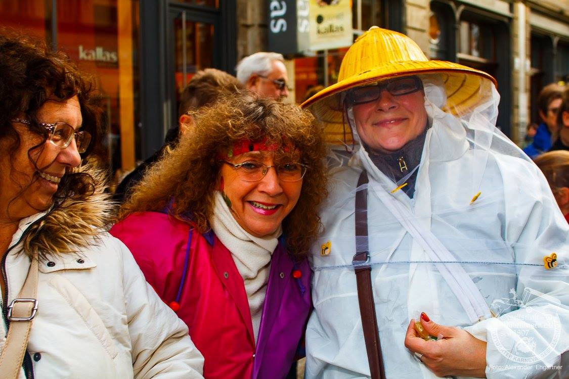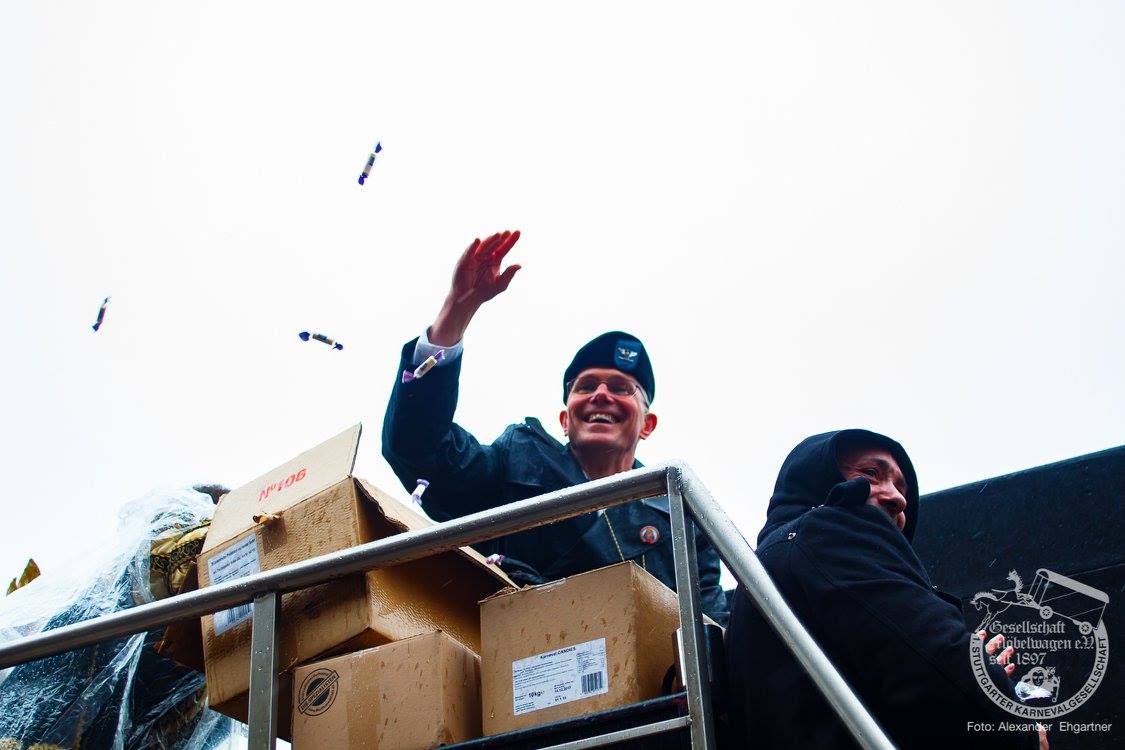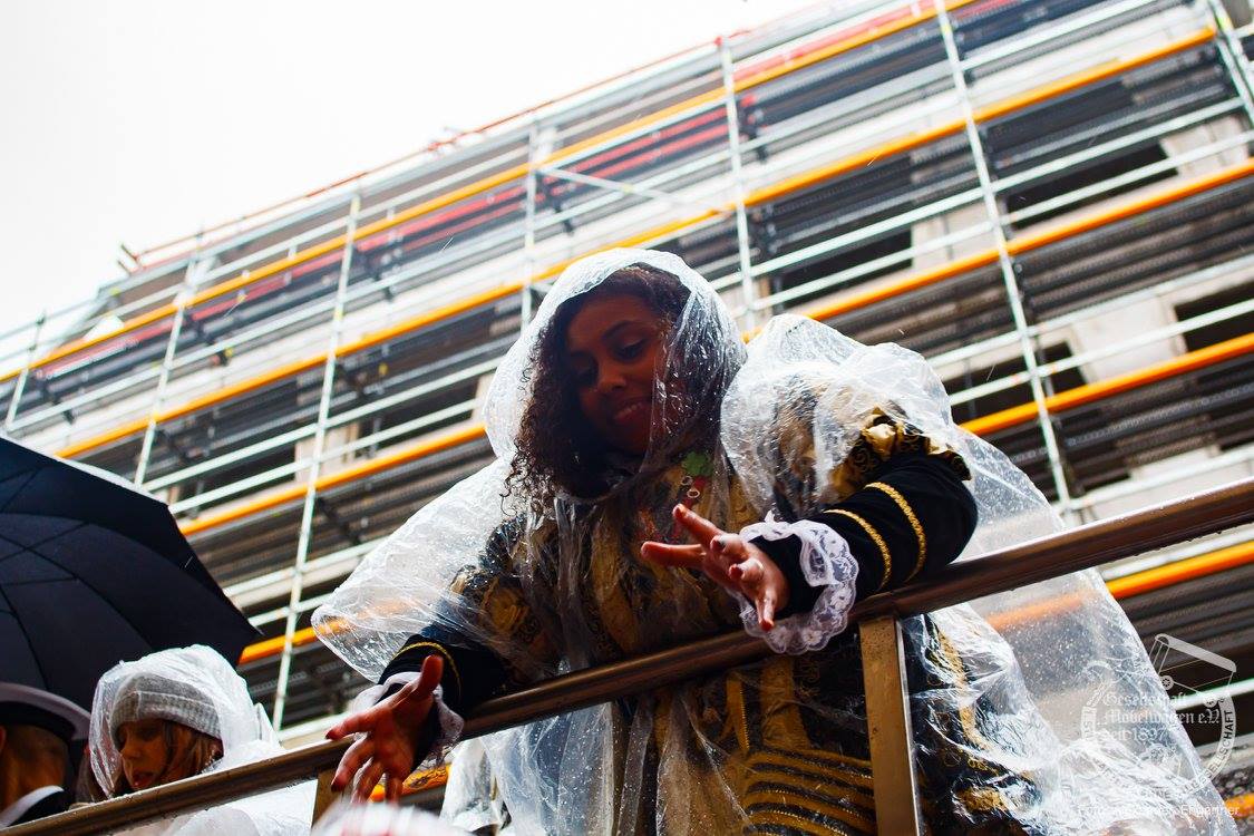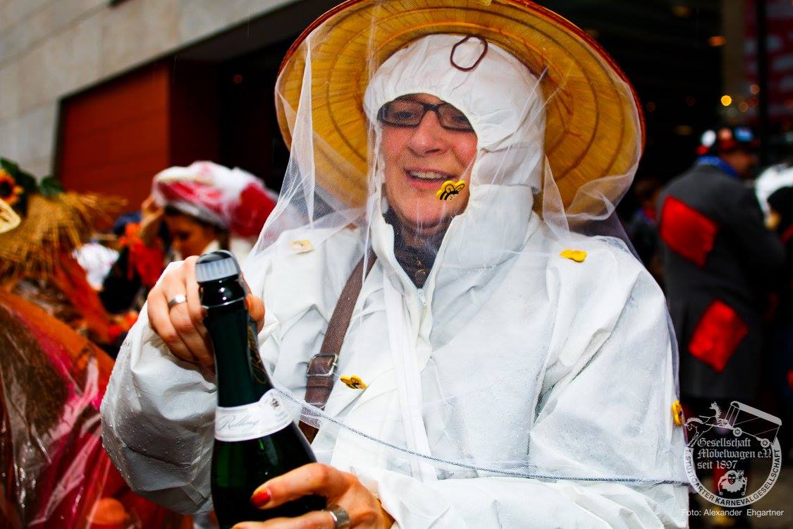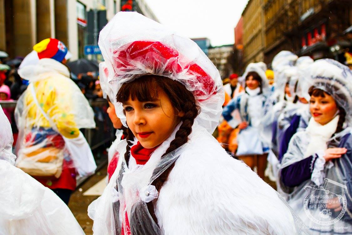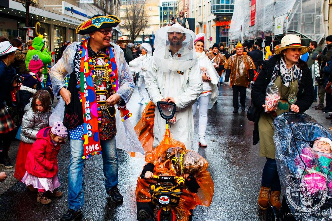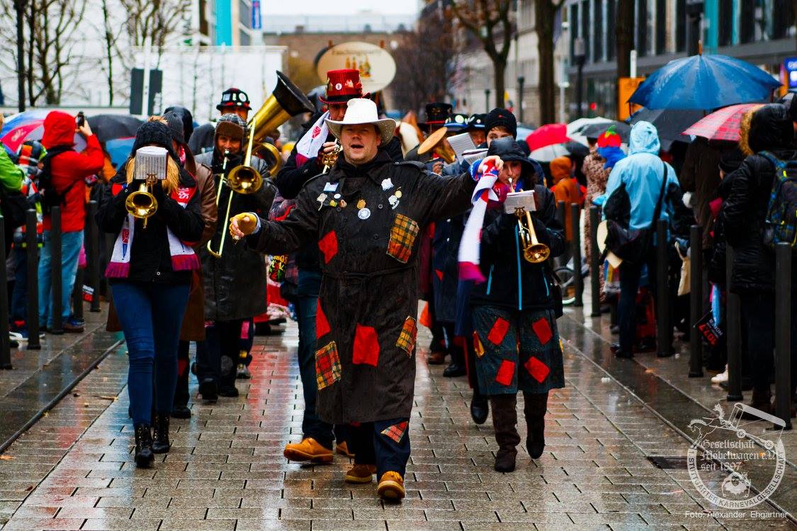 Pünktlich zu Umzugsbeginn goß es wie aus Eimern. Doch wir alle wissen, es gibt kein schlechtes Wetter, sondern nur schlechte Kleidung! Und wir Möbler hatten natürlich vorgesorgt! Alle wurden in Plastikhüllen verpackt und los ging es. Schon nach wenigen Metern säumten Unmengen an feierlustigen Narren den Straßenrand. Da kam unser Prinzenpaar an Deck der Black Pearl natürlich gerade recht. SIe unterhielten die Narren am Straßenrand während des gesamten Umzugs mit Livemusik und brachten die Mengen zum toben.