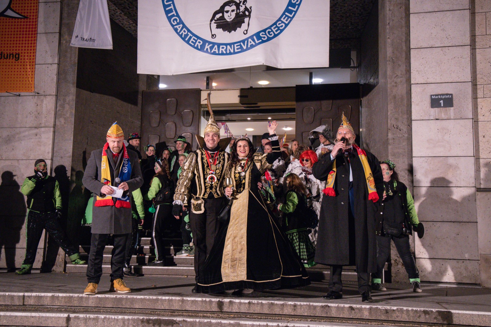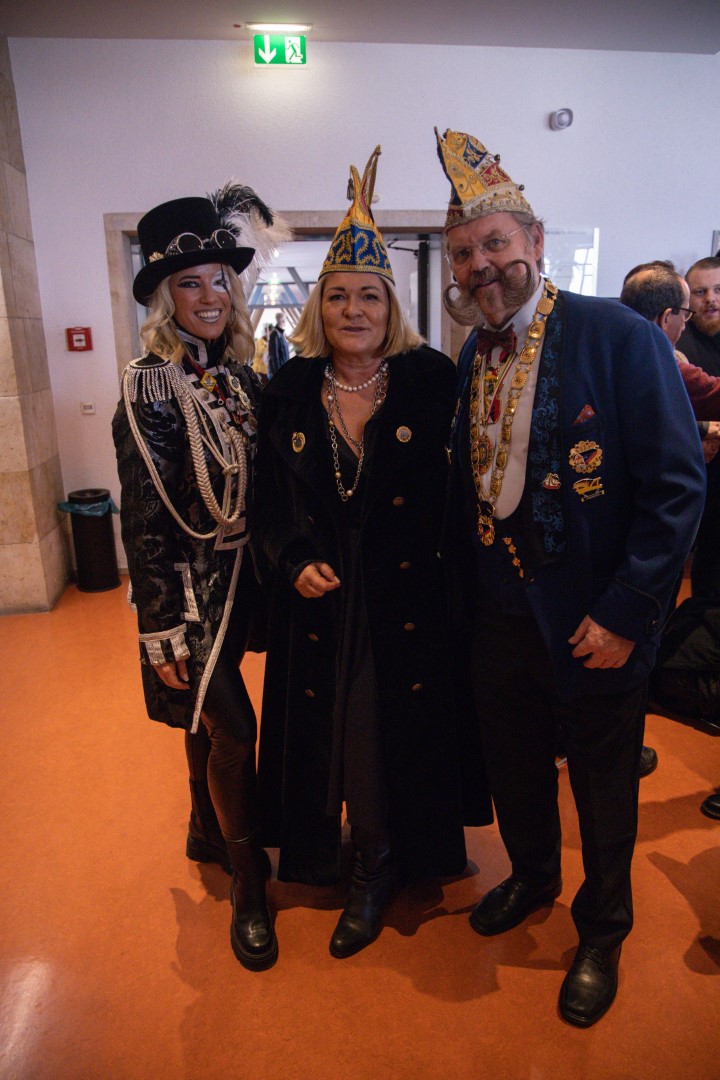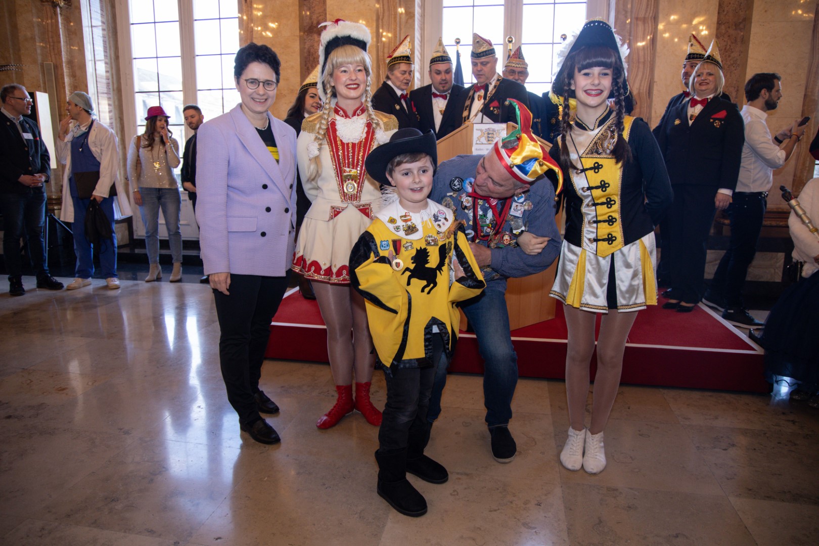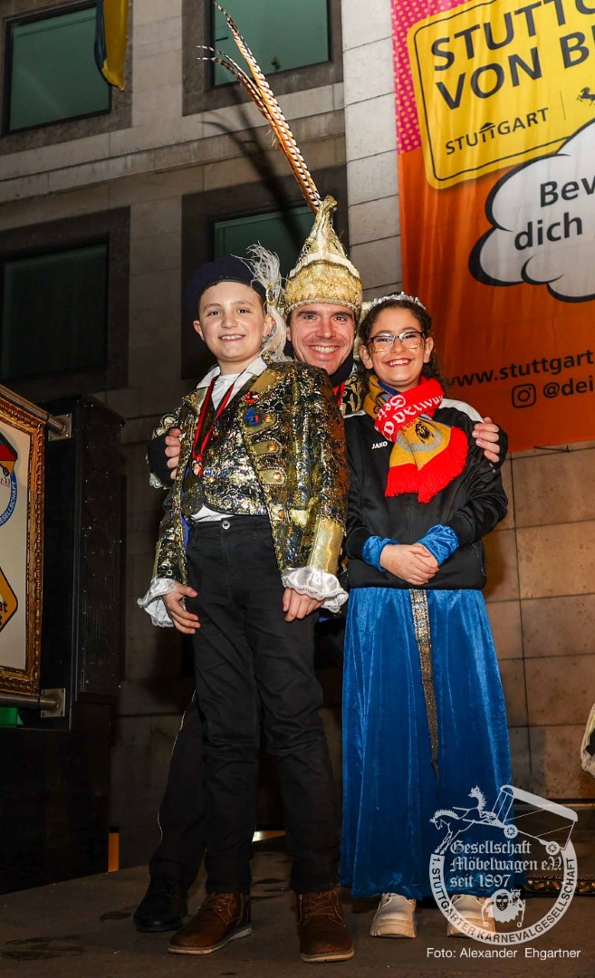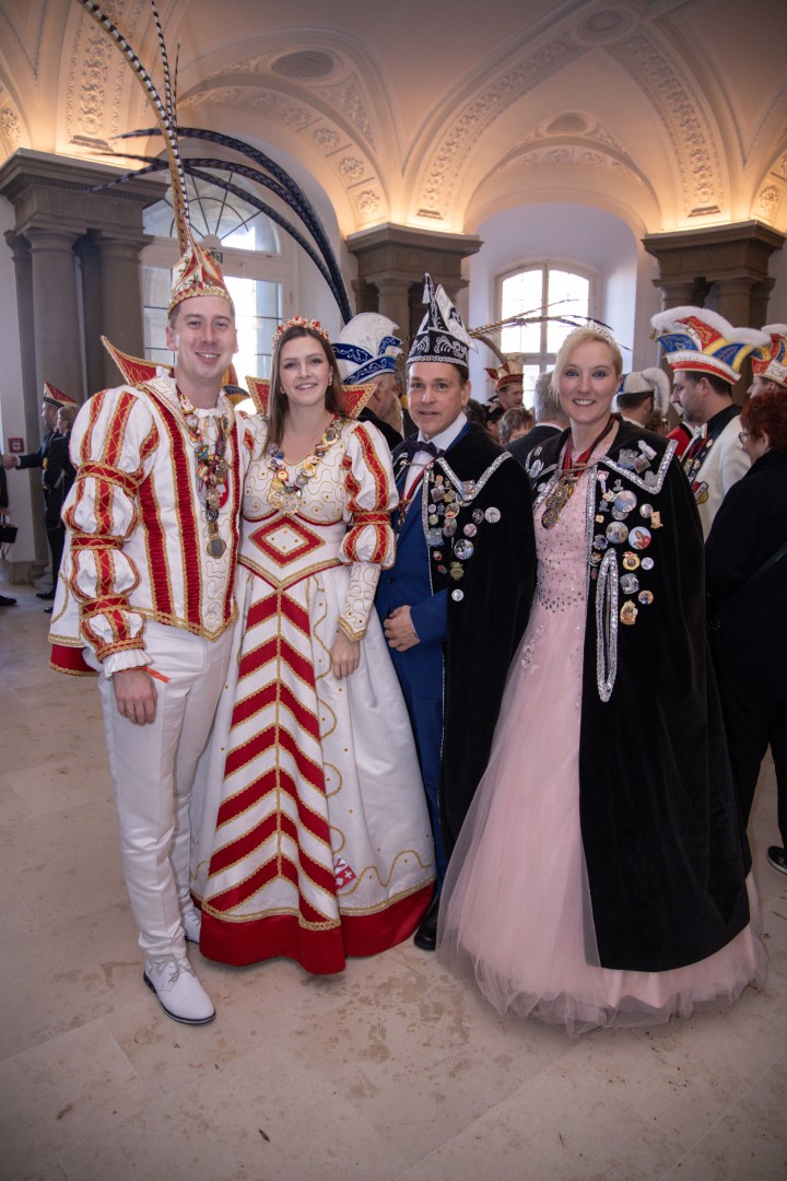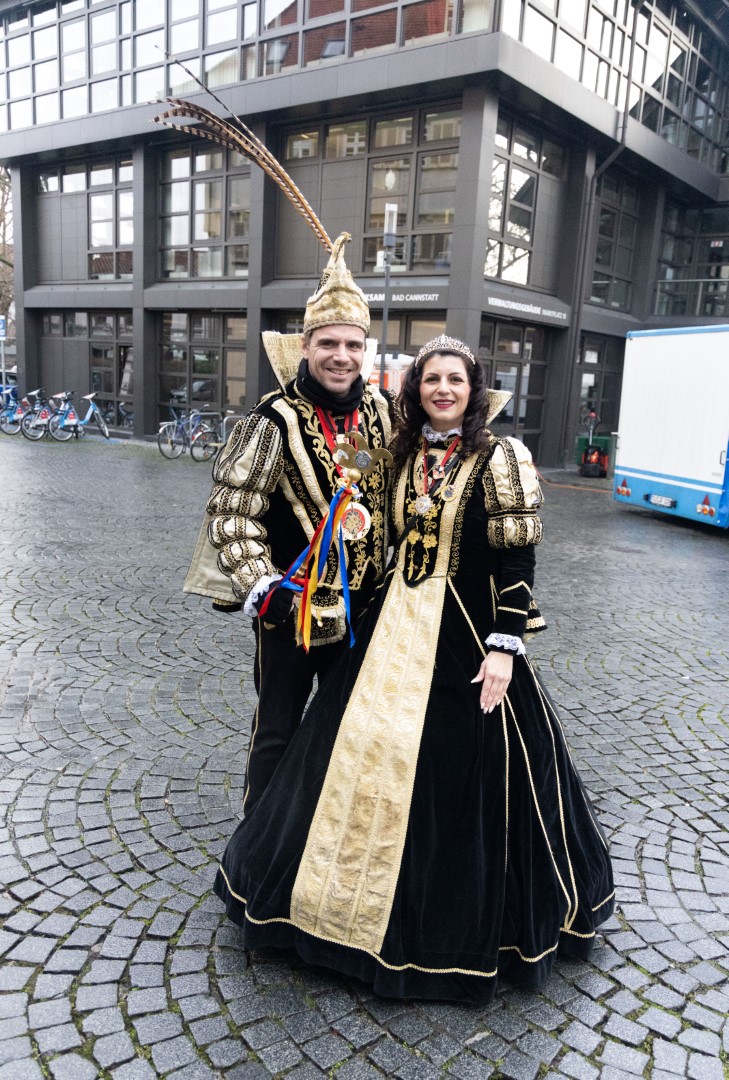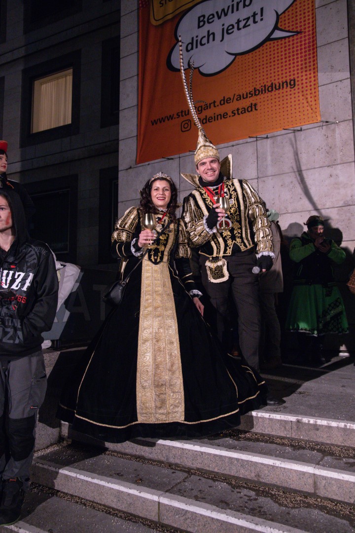 Als Gäste der Landesregierung werden rund 600 Karnevalisten des Landesverbands Württembergische Karnevalsvereine e.V., der Vereinigung Badisch-Pfälzischer Karnevalsvereine e.V. sowie des Narrenrings Main-Neckar e.V. am Empfang im Neuen Schloss teilnehmen. Der Karnevalsempfang beginnt am Nachmittag. Nach einer närrischen Begrüßung durch den Stellvertretenden Ministerpräsidenten Thomas Strobl, der Ministerpräsident Winfried Kretschmann vertritt, und Grußworten der Präsidenten der Karnevals- und Fasnachtsvereine, sind Prinzenpaare und Präsidiumsmitglieder zum Defilee mit Minister Strobl geladen. Unsere Prinzessin Nadine I. war mit unserer Hofdame Lisa und unserem Bruno beim Defilee mit Minister Strobl. Danach ging es gleich weiter zum Empfang im Rathaus und dann freuen wir uns auf den großen Umzug in Stuttgart!