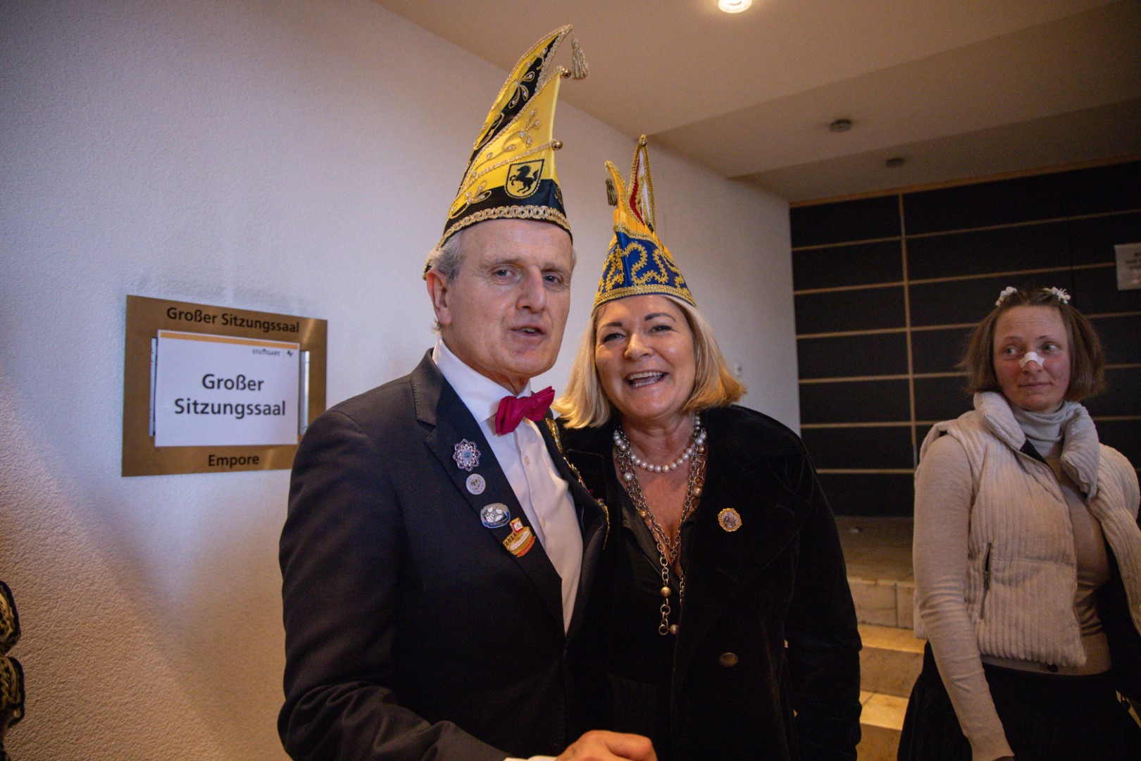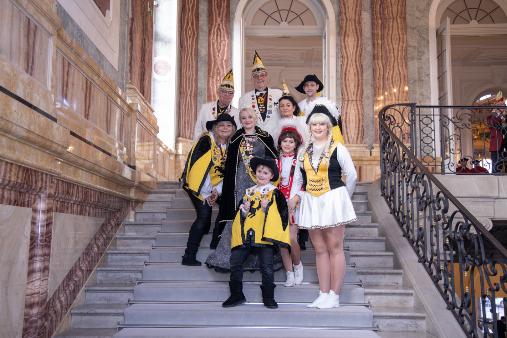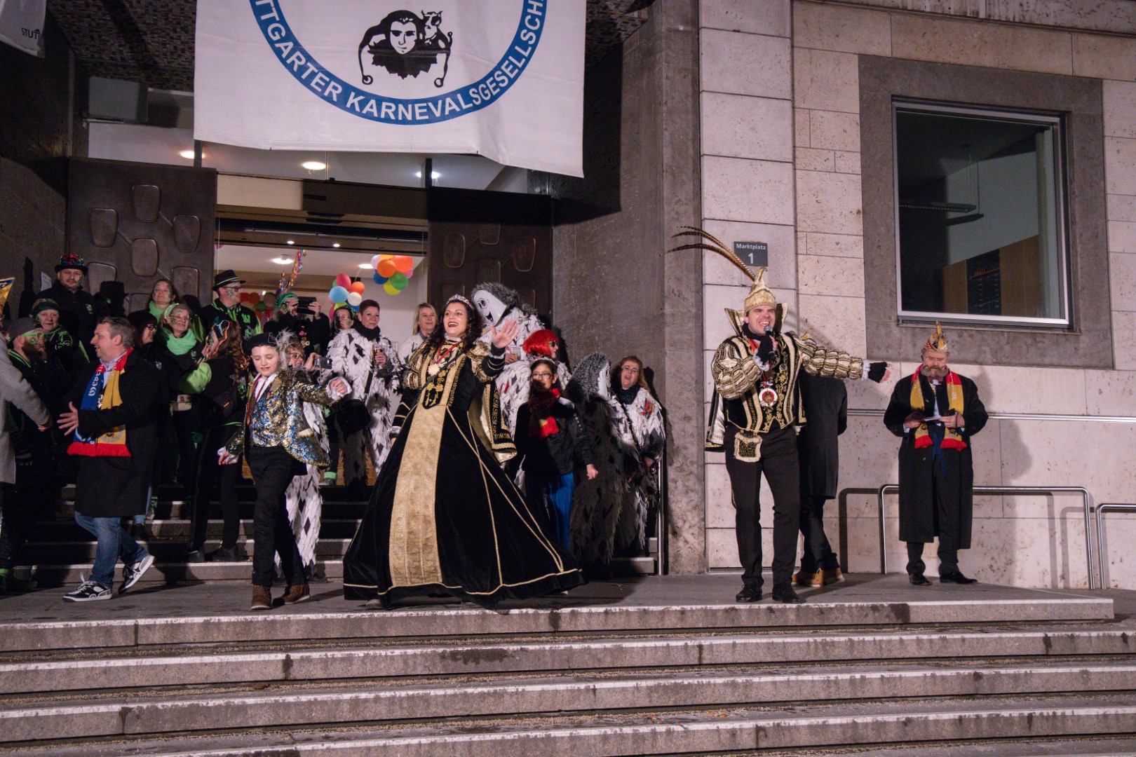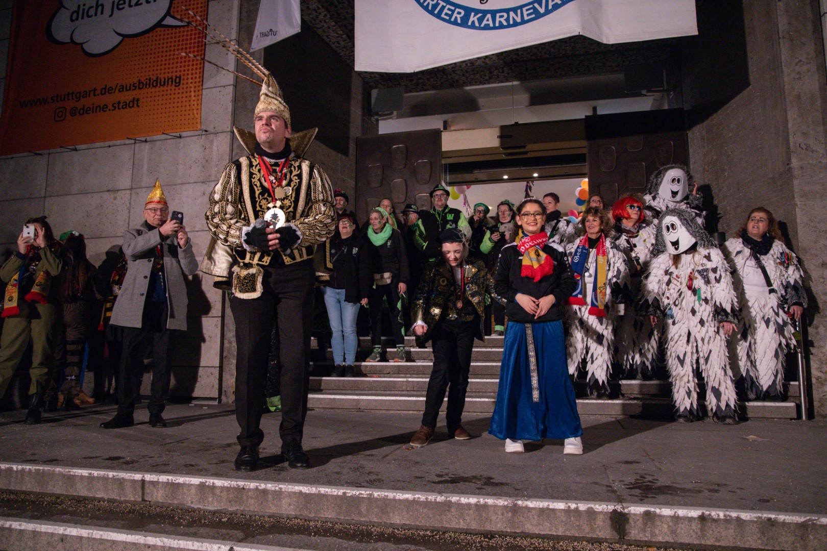 Als Gäste der Landesregierung werden rund 600 Karnevalisten des Landesverbands Württembergische Karnevalsvereine e.V., der Vereinigung Badisch-Pfälzischer Karnevalsvereine e.V. sowie des Narrenrings Main-Neckar e.V. am Empfang im Neuen Schloss teilnehmen. Der Karnevalsempfang beginnt am Nachmittag. Nach einer närrischen Begrüßung durch den Stellvertretenden Ministerpräsidenten Thomas Strobl, der Ministerpräsident Winfried Kretschmann vertritt, und Grußworten der Präsidenten der Karnevals- und Fasnachtsvereine, sind Prinzenpaare und Präsidiumsmitglieder zum Defilee mit Minister Strobl geladen. Unsere Prinzessin Nadine I. war mit unserer Hofdame Lisa und unserem Bruno beim Defilee mit Minister Strobl. Danach ging es gleich weiter zum Empfang im Rathaus und dann freuen wir uns auf den großen Umzug in Stuttgart!