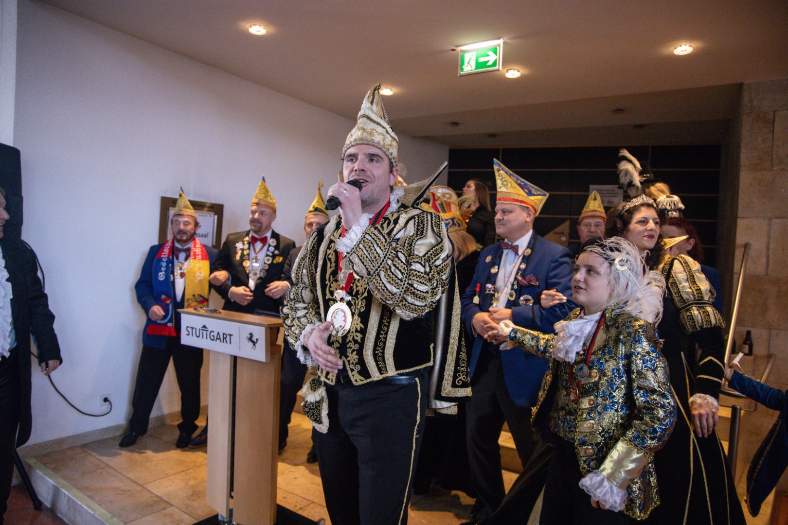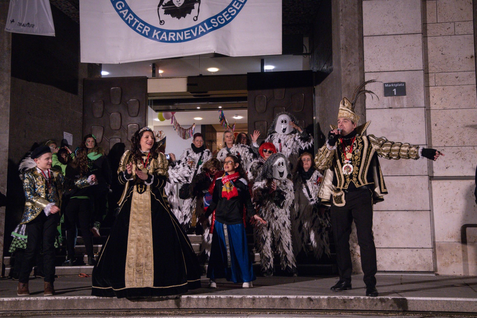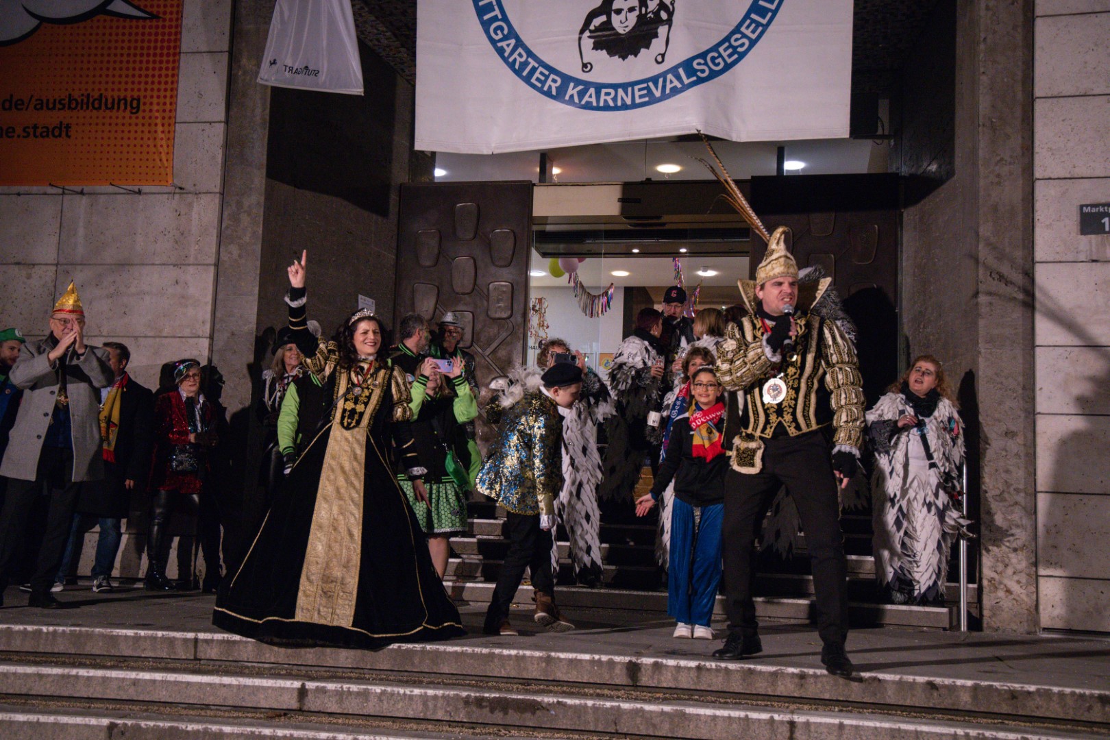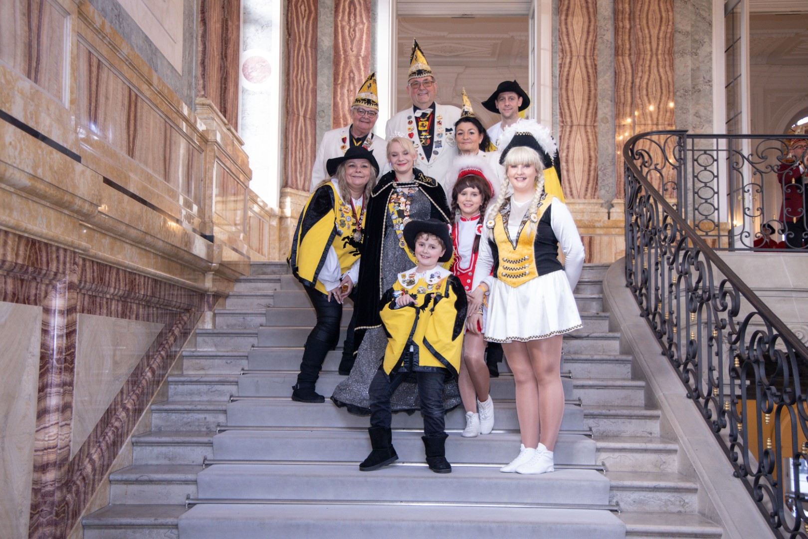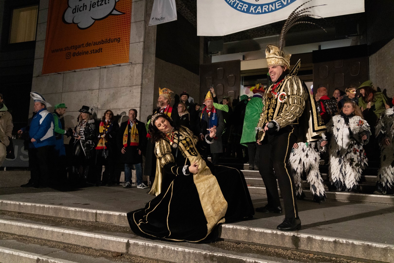 Als Gäste der Landesregierung werden rund 600 Karnevalisten des Landesverbands Württembergische Karnevalsvereine e.V., der Vereinigung Badisch-Pfälzischer Karnevalsvereine e.V. sowie des Narrenrings Main-Neckar e.V. am Empfang im Neuen Schloss teilnehmen. Der Karnevalsempfang beginnt am Nachmittag. Nach einer närrischen Begrüßung durch den Stellvertretenden Ministerpräsidenten Thomas Strobl, der Ministerpräsident Winfried Kretschmann vertritt, und Grußworten der Präsidenten der Karnevals- und Fasnachtsvereine, sind Prinzenpaare und Präsidiumsmitglieder zum Defilee mit Minister Strobl geladen. Unsere Prinzessin Nadine I. war mit unserer Hofdame Lisa und unserem Bruno beim Defilee mit Minister Strobl. Danach ging es gleich weiter zum Empfang im Rathaus und dann freuen wir uns auf den großen Umzug in Stuttgart!