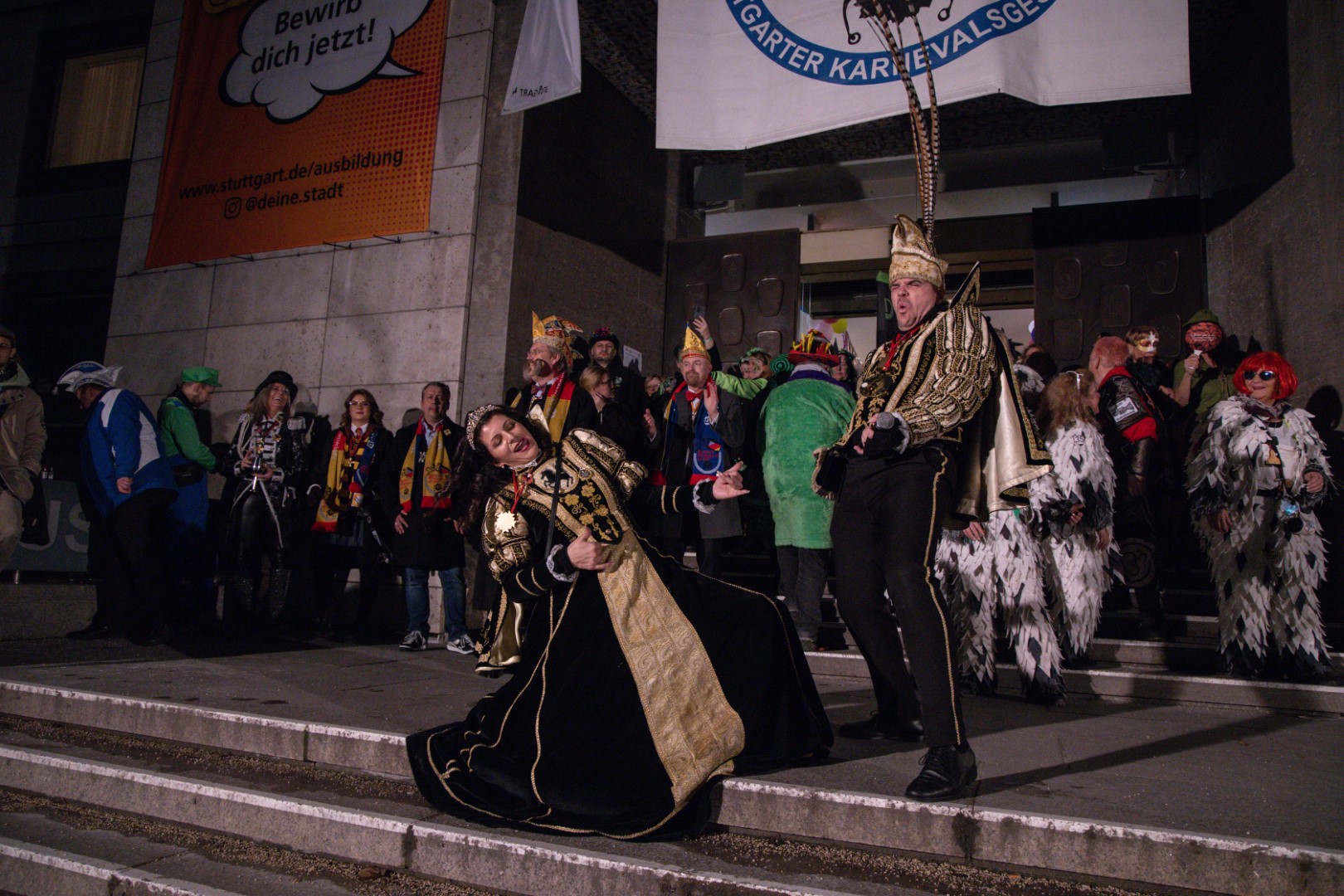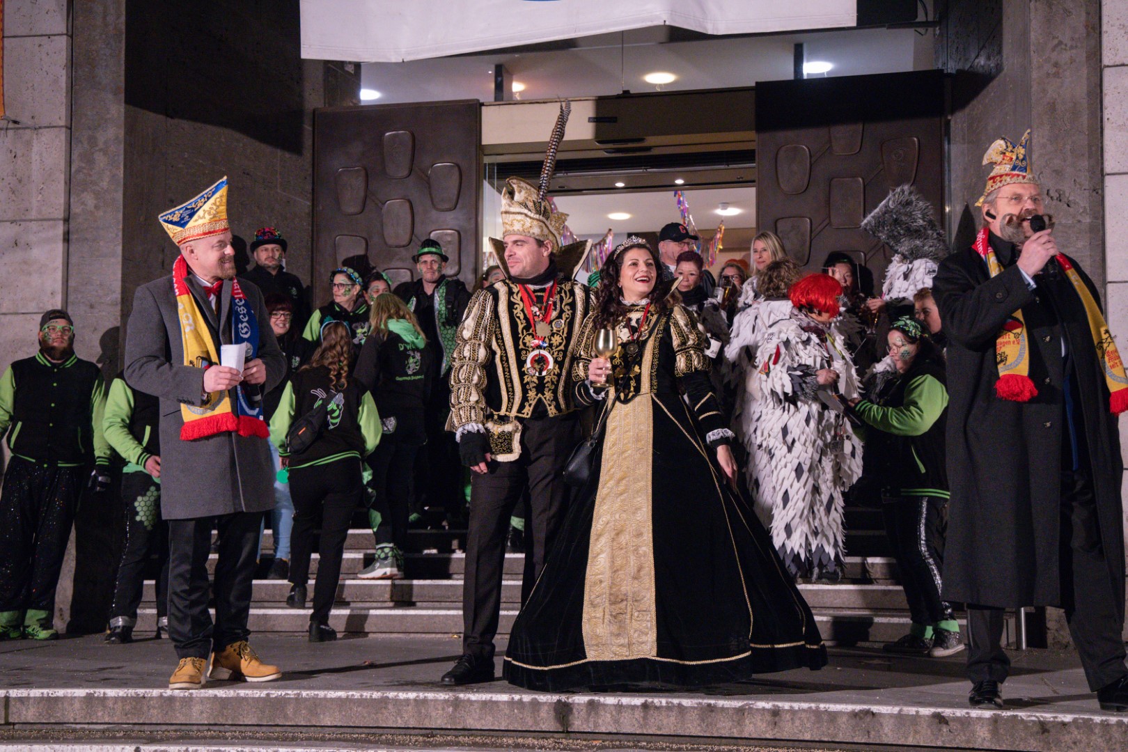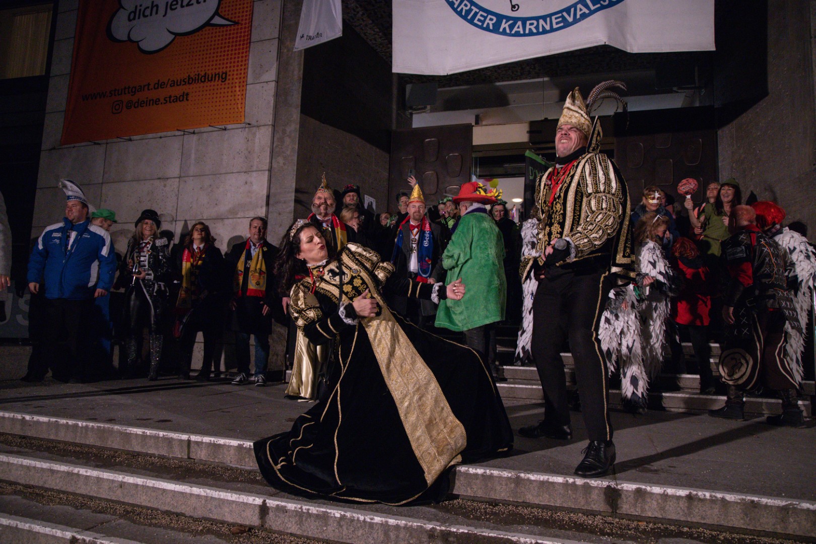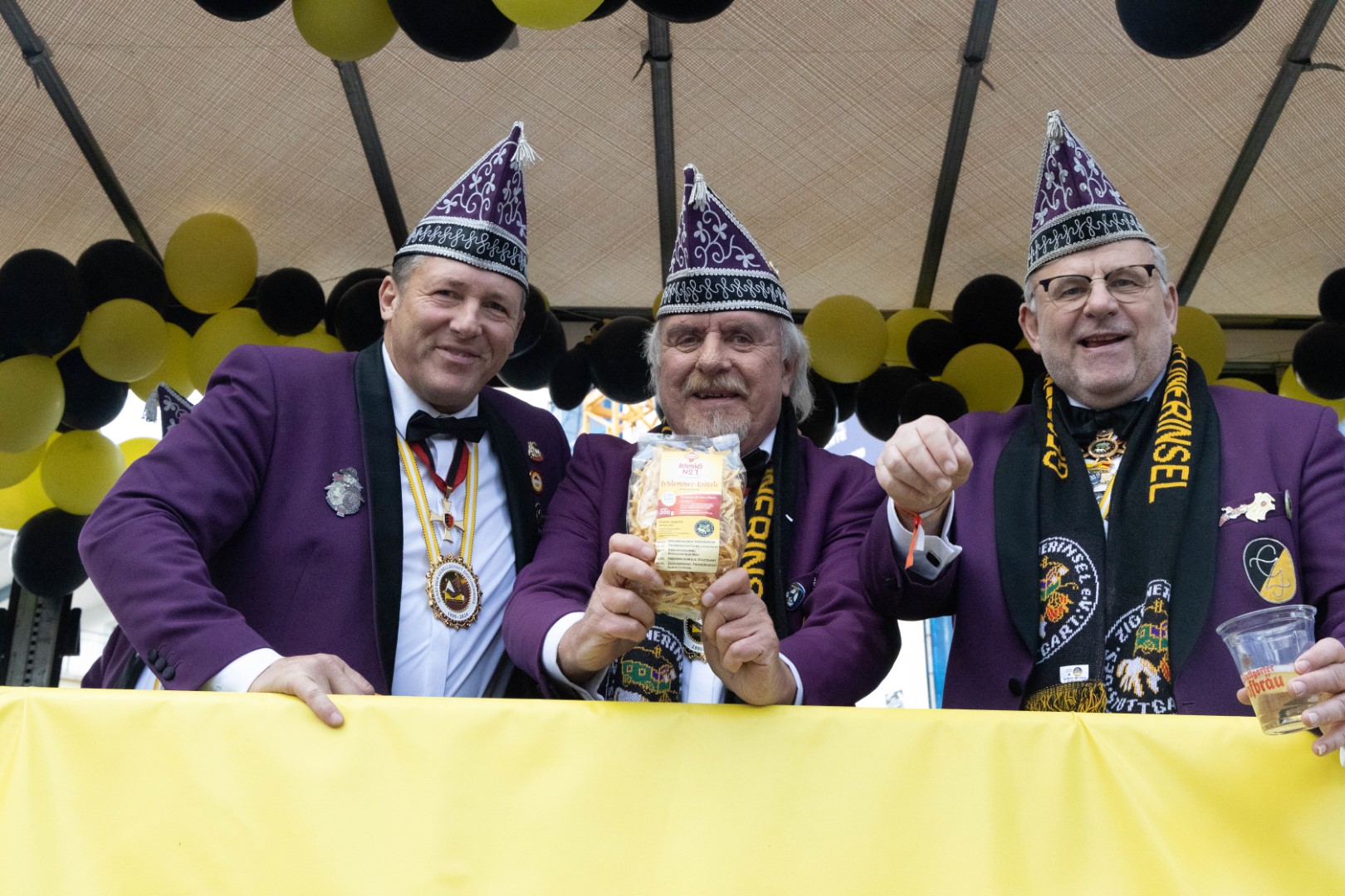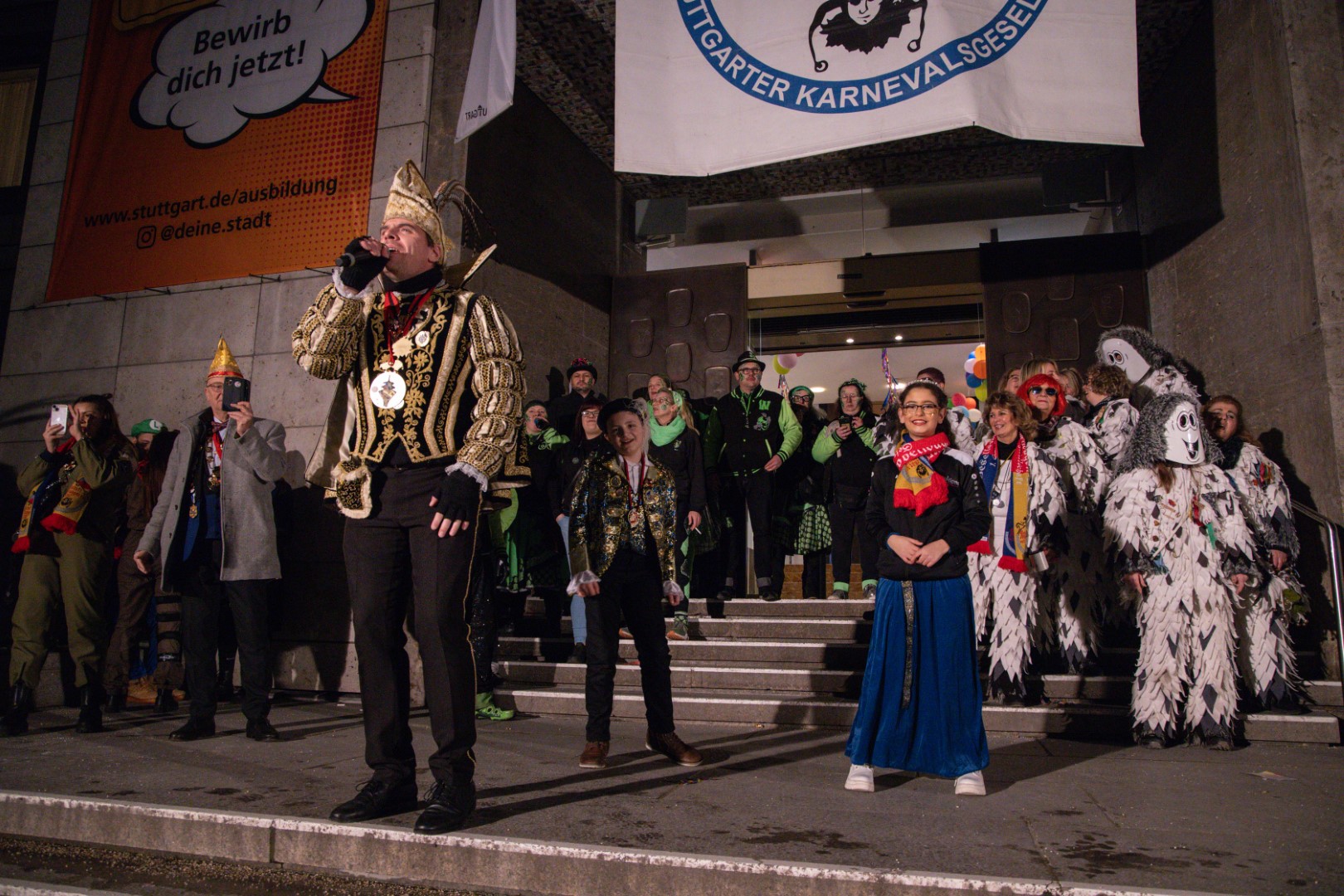 Als Gäste der Landesregierung werden rund 600 Karnevalisten des Landesverbands Württembergische Karnevalsvereine e.V., der Vereinigung Badisch-Pfälzischer Karnevalsvereine e.V. sowie des Narrenrings Main-Neckar e.V. am Empfang im Neuen Schloss teilnehmen. Der Karnevalsempfang beginnt am Nachmittag. Nach einer närrischen Begrüßung durch den Stellvertretenden Ministerpräsidenten Thomas Strobl, der Ministerpräsident Winfried Kretschmann vertritt, und Grußworten der Präsidenten der Karnevals- und Fasnachtsvereine, sind Prinzenpaare und Präsidiumsmitglieder zum Defilee mit Minister Strobl geladen. Unsere Prinzessin Nadine I. war mit unserer Hofdame Lisa und unserem Bruno beim Defilee mit Minister Strobl. Danach ging es gleich weiter zum Empfang im Rathaus und dann freuen wir uns auf den großen Umzug in Stuttgart!