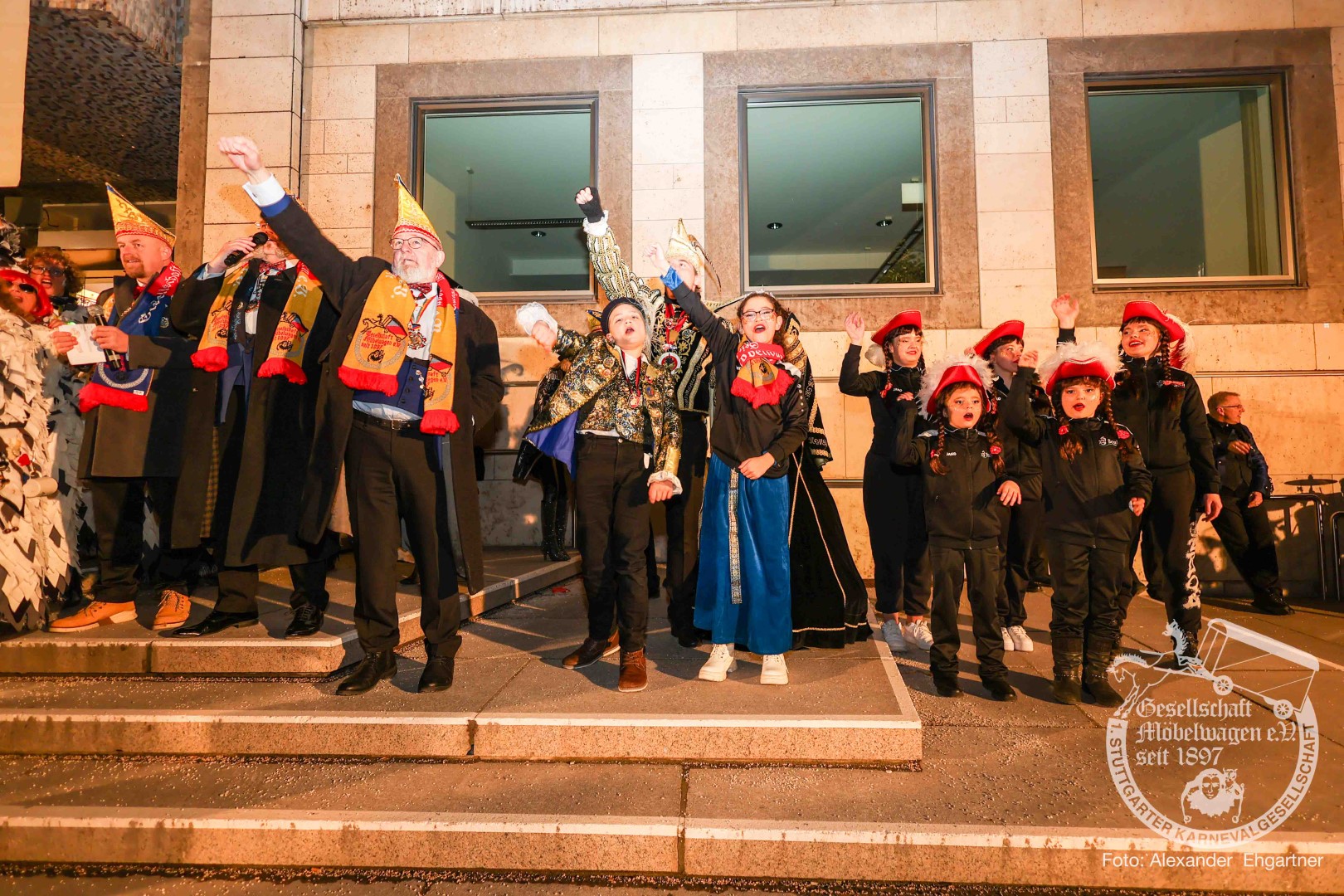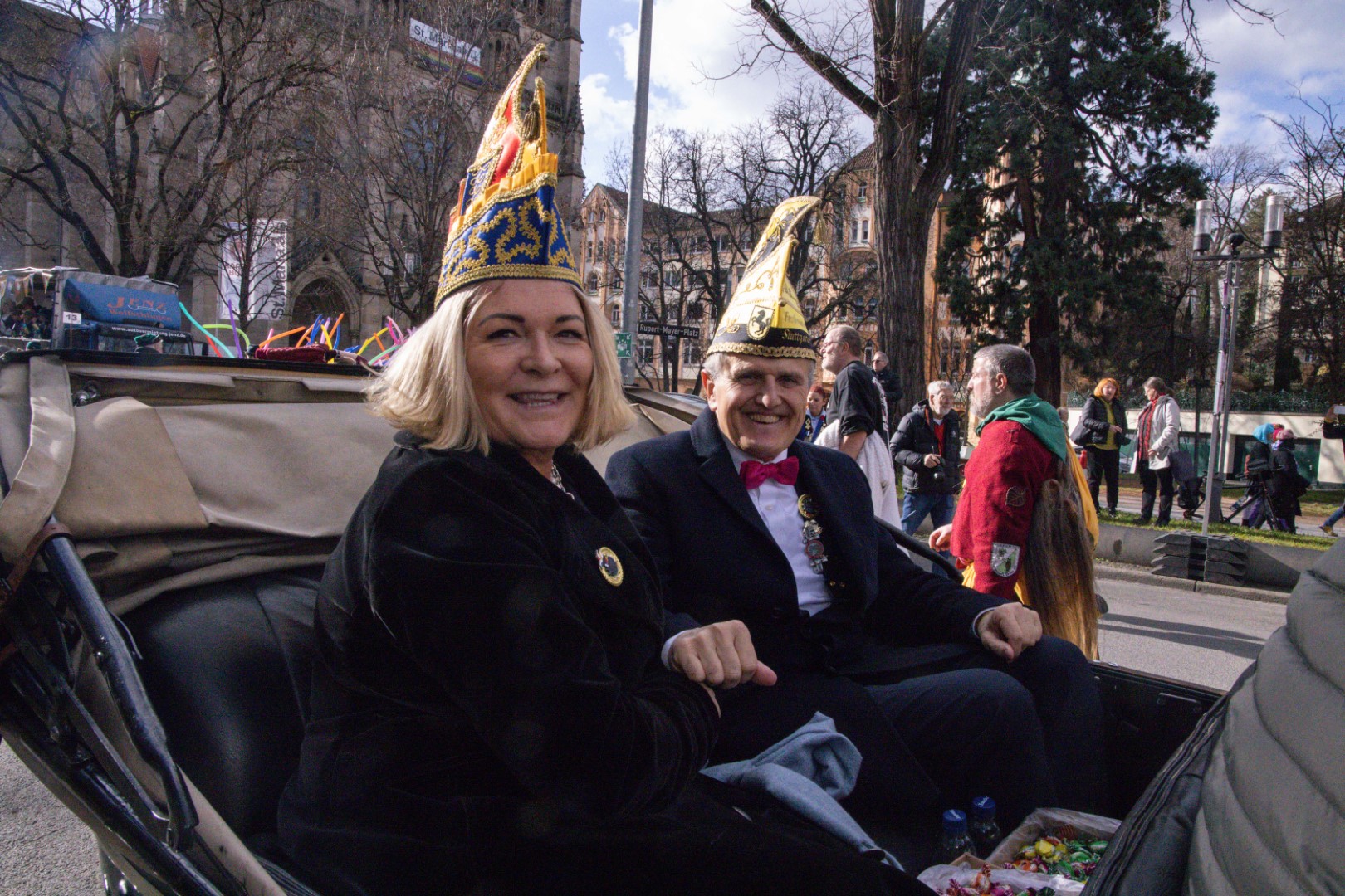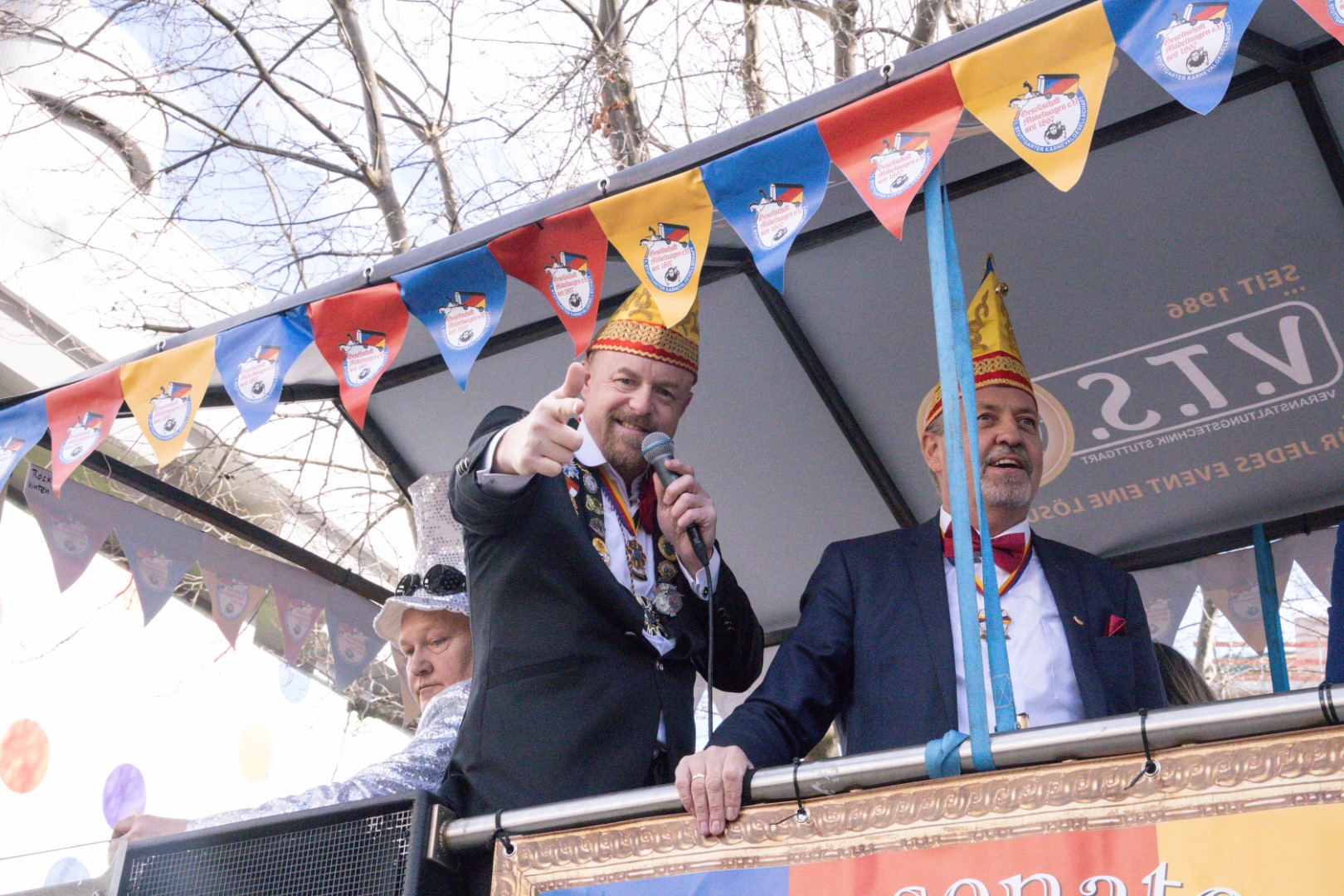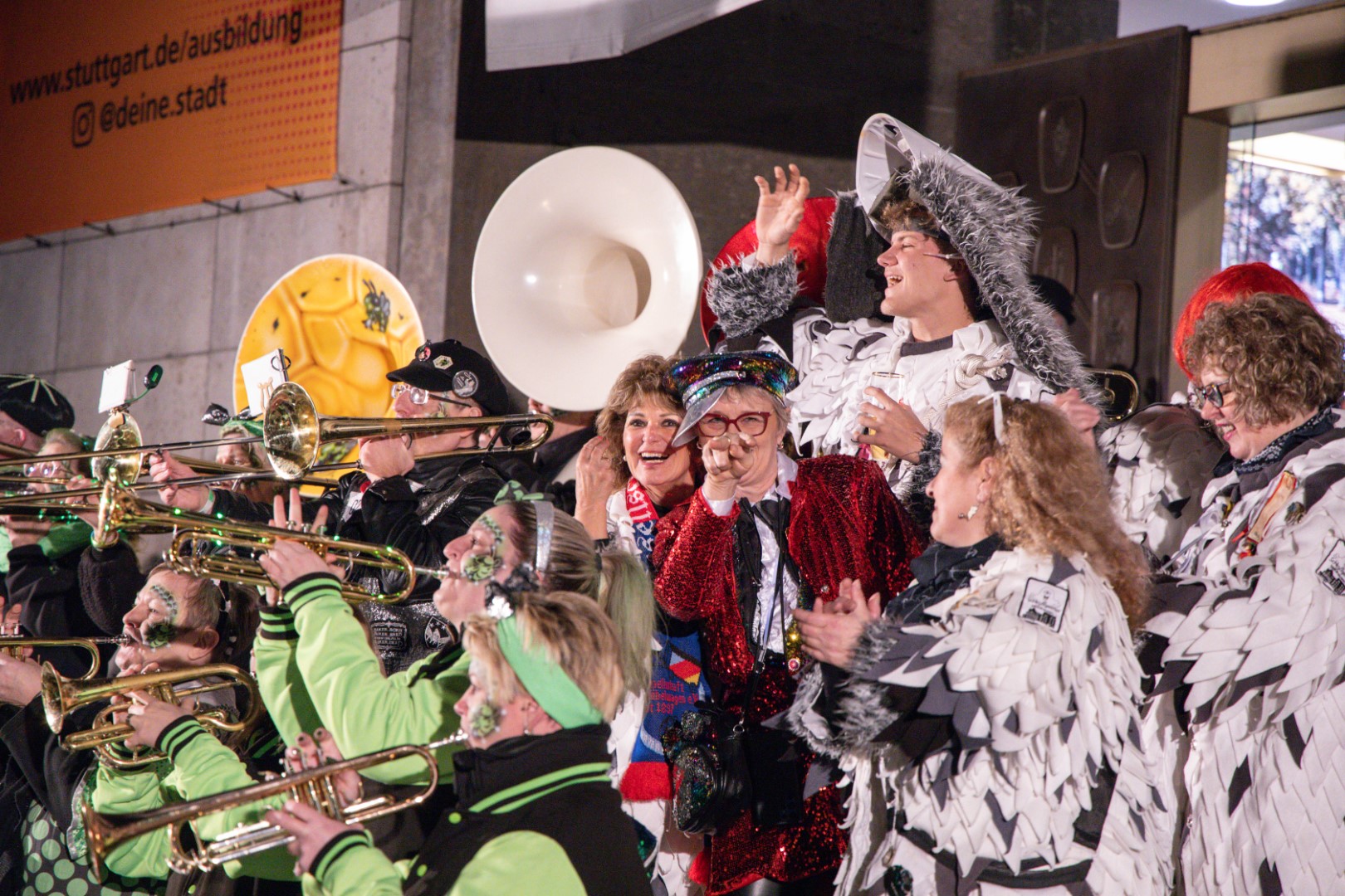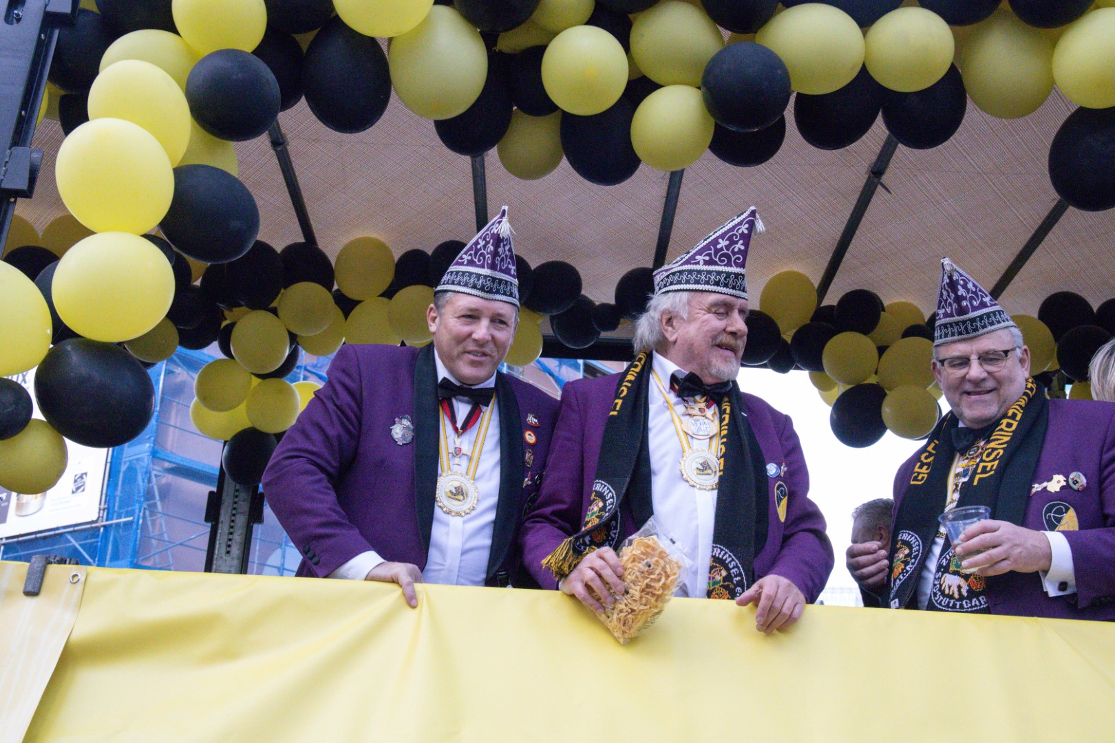 Als Gäste der Landesregierung werden rund 600 Karnevalisten des Landesverbands Württembergische Karnevalsvereine e.V., der Vereinigung Badisch-Pfälzischer Karnevalsvereine e.V. sowie des Narrenrings Main-Neckar e.V. am Empfang im Neuen Schloss teilnehmen. Der Karnevalsempfang beginnt am Nachmittag. Nach einer närrischen Begrüßung durch den Stellvertretenden Ministerpräsidenten Thomas Strobl, der Ministerpräsident Winfried Kretschmann vertritt, und Grußworten der Präsidenten der Karnevals- und Fasnachtsvereine, sind Prinzenpaare und Präsidiumsmitglieder zum Defilee mit Minister Strobl geladen. Unsere Prinzessin Nadine I. war mit unserer Hofdame Lisa und unserem Bruno beim Defilee mit Minister Strobl. Danach ging es gleich weiter zum Empfang im Rathaus und dann freuen wir uns auf den großen Umzug in Stuttgart!