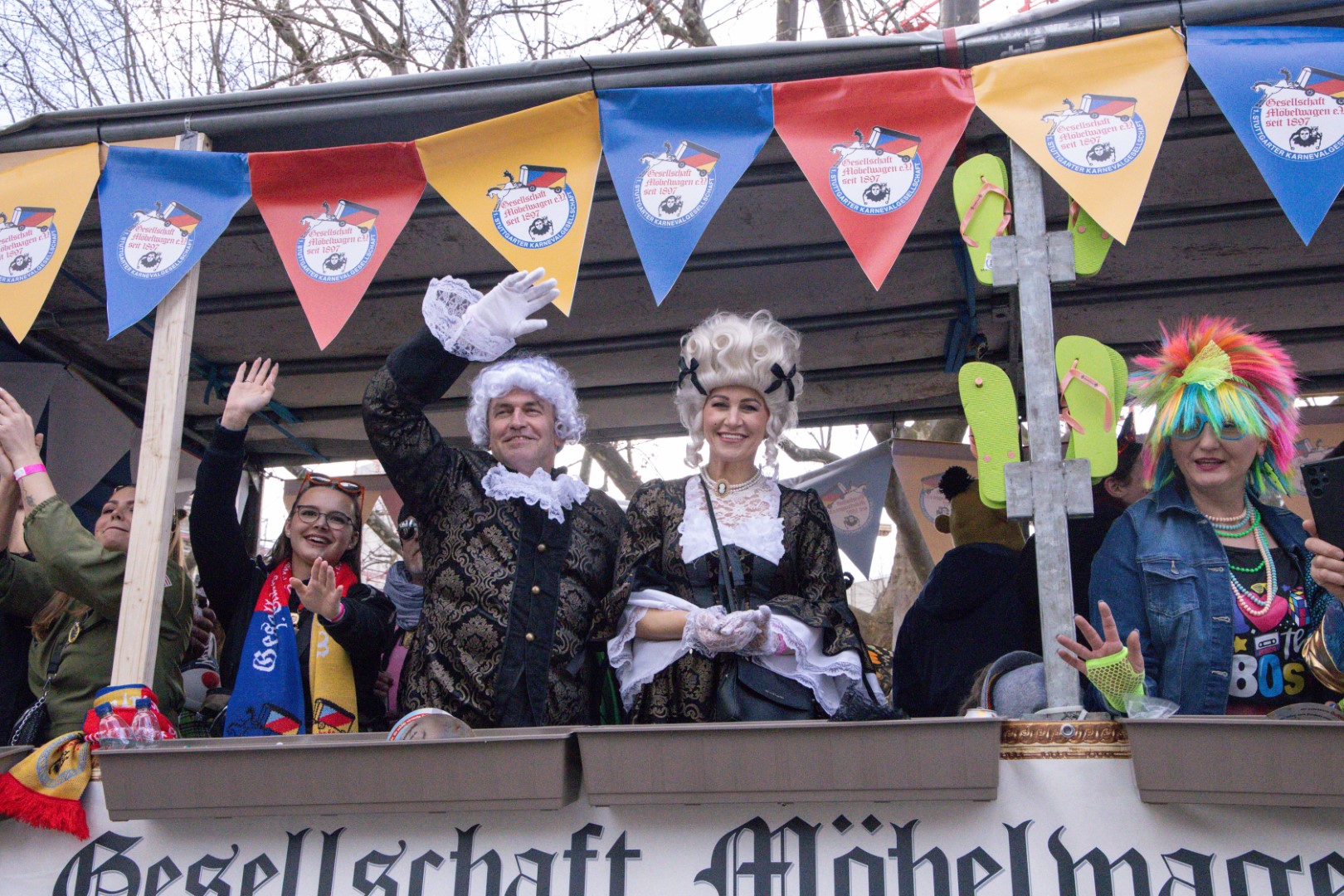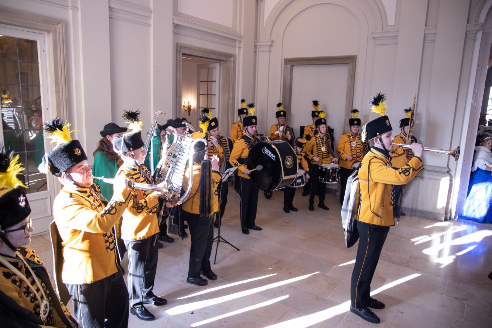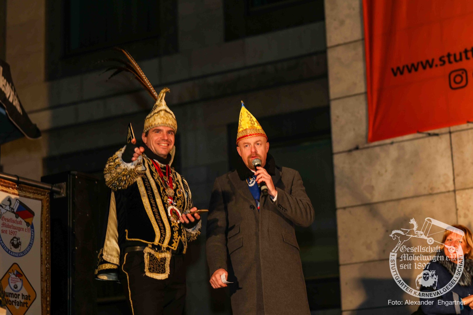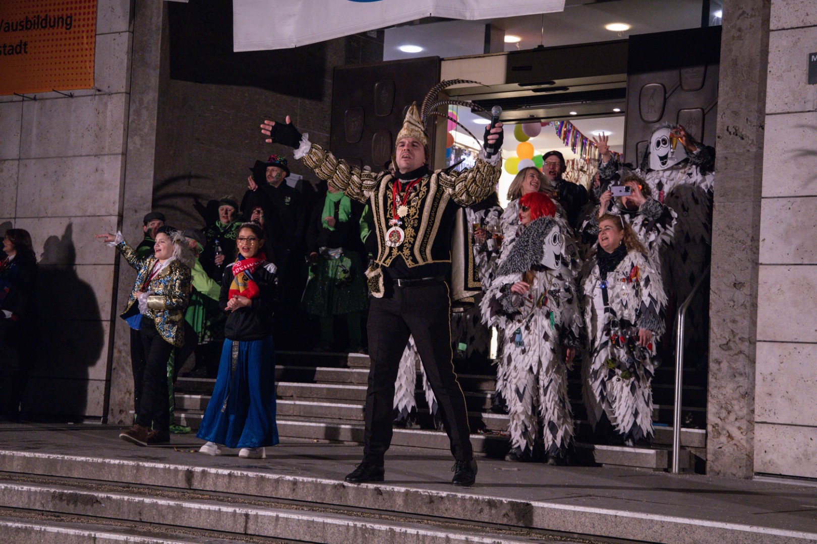 Als Gäste der Landesregierung werden rund 600 Karnevalisten des Landesverbands Württembergische Karnevalsvereine e.V., der Vereinigung Badisch-Pfälzischer Karnevalsvereine e.V. sowie des Narrenrings Main-Neckar e.V. am Empfang im Neuen Schloss teilnehmen. Der Karnevalsempfang beginnt am Nachmittag. Nach einer närrischen Begrüßung durch den Stellvertretenden Ministerpräsidenten Thomas Strobl, der Ministerpräsident Winfried Kretschmann vertritt, und Grußworten der Präsidenten der Karnevals- und Fasnachtsvereine, sind Prinzenpaare und Präsidiumsmitglieder zum Defilee mit Minister Strobl geladen. Unsere Prinzessin Nadine I. war mit unserer Hofdame Lisa und unserem Bruno beim Defilee mit Minister Strobl. Danach ging es gleich weiter zum Empfang im Rathaus und dann freuen wir uns auf den großen Umzug in Stuttgart!