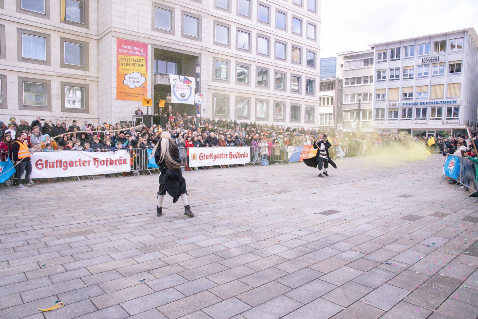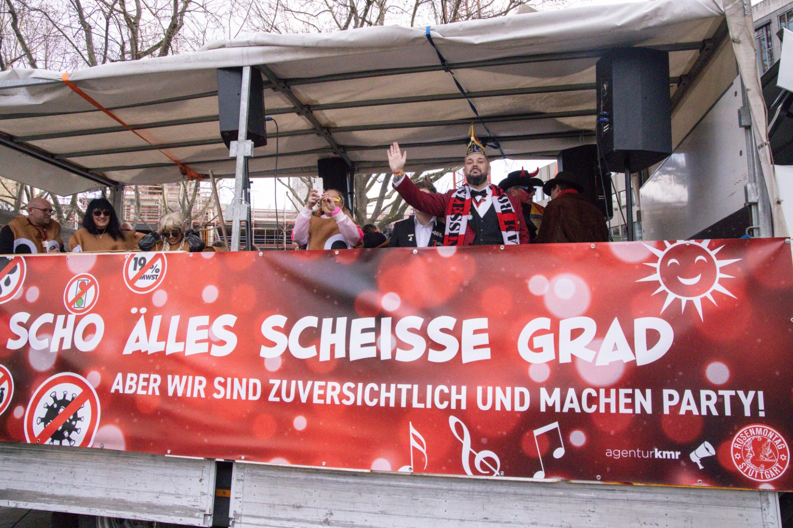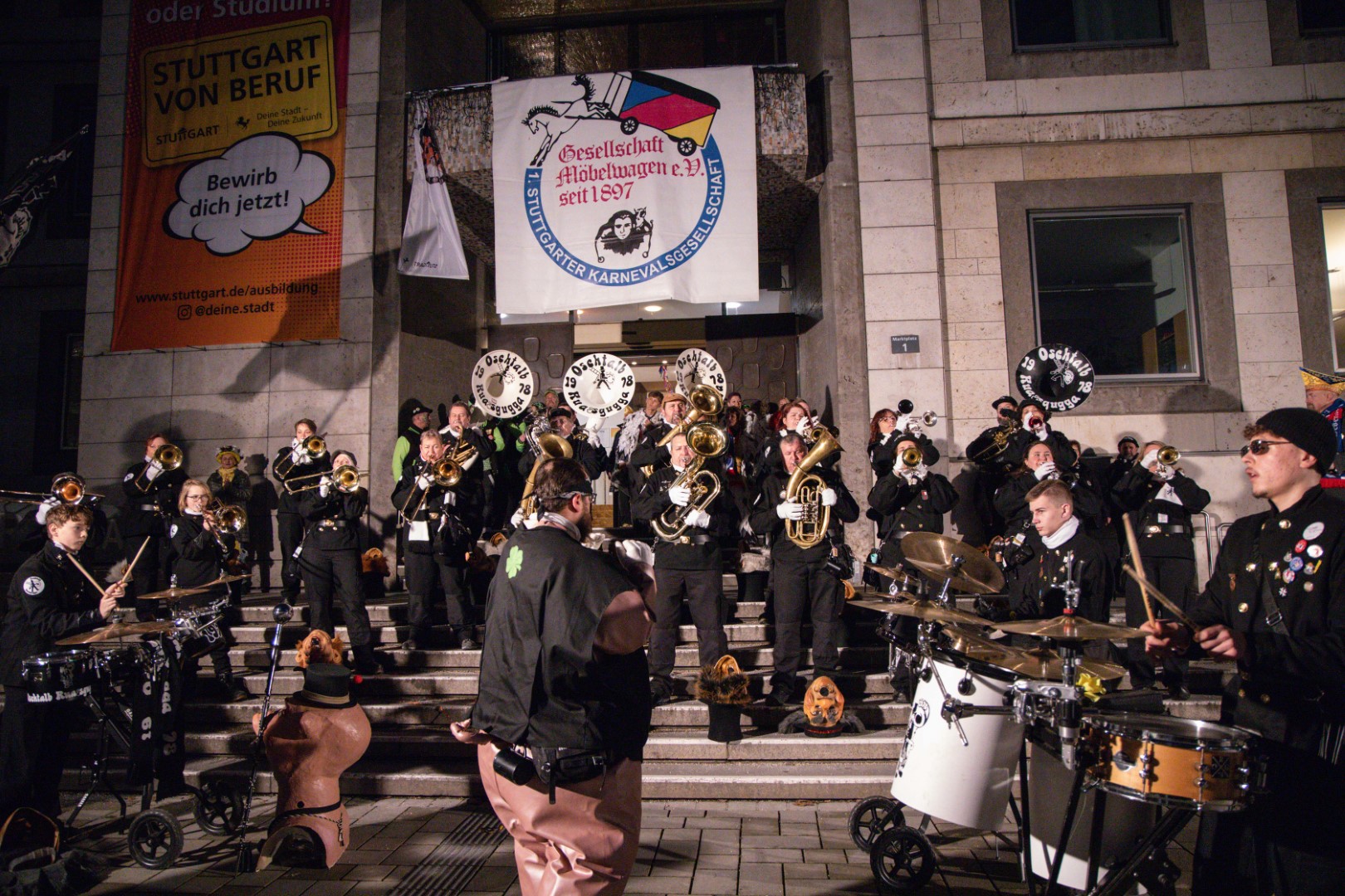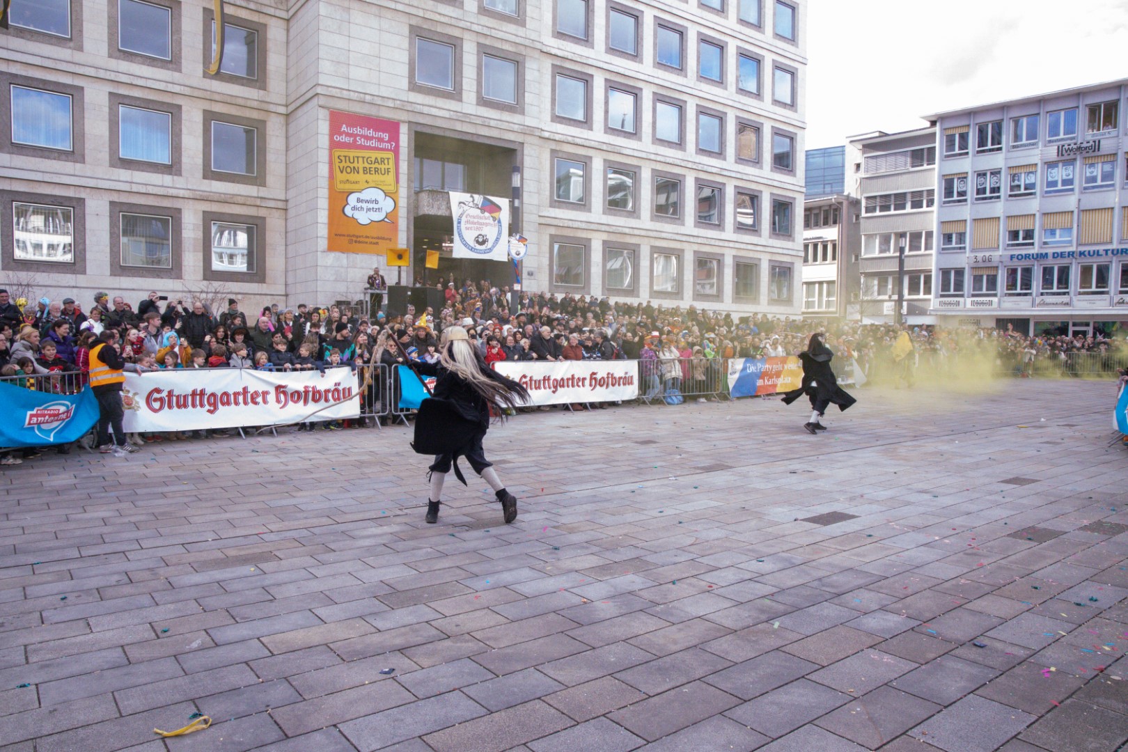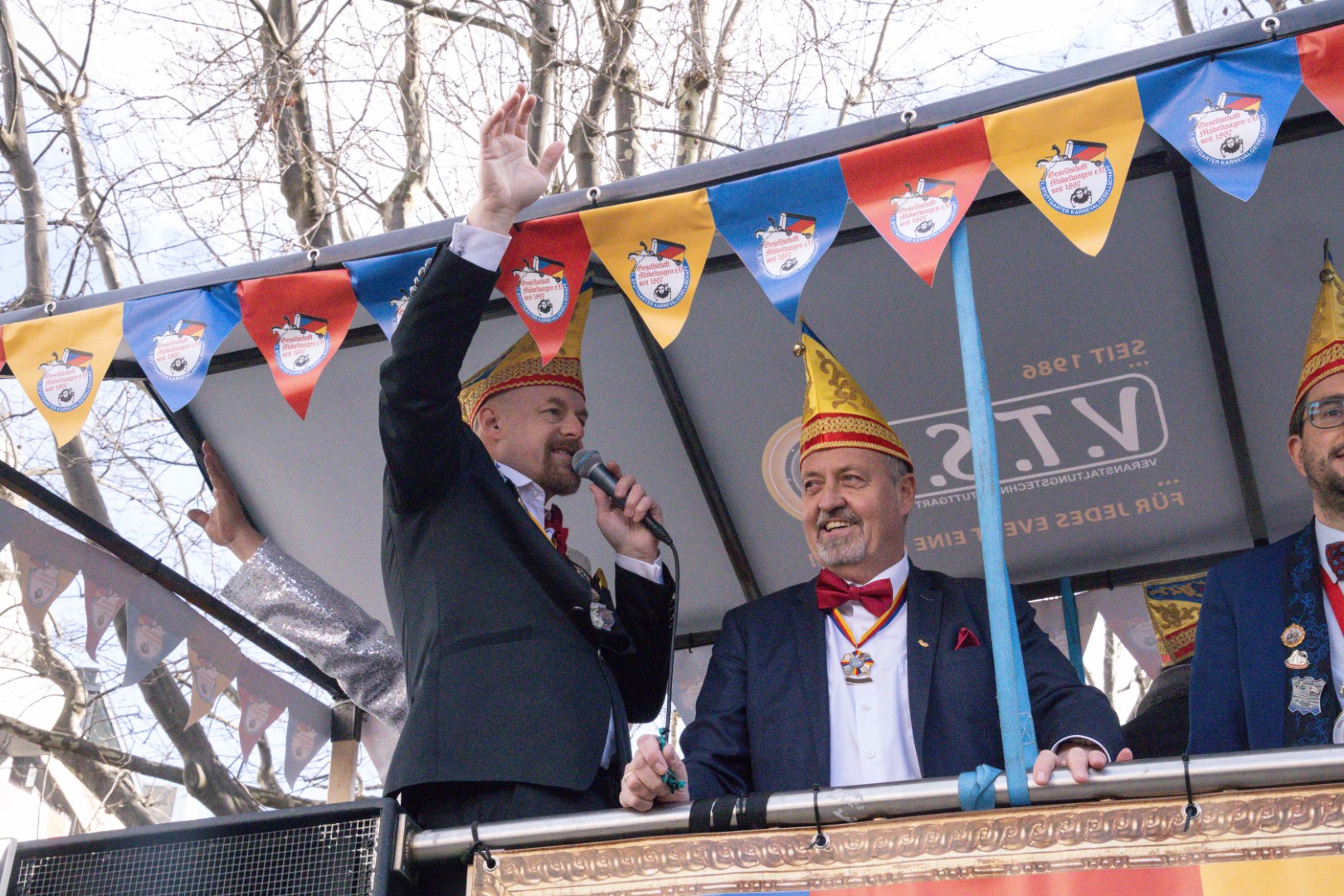 Als Gäste der Landesregierung werden rund 600 Karnevalisten des Landesverbands Württembergische Karnevalsvereine e.V., der Vereinigung Badisch-Pfälzischer Karnevalsvereine e.V. sowie des Narrenrings Main-Neckar e.V. am Empfang im Neuen Schloss teilnehmen. Der Karnevalsempfang beginnt am Nachmittag. Nach einer närrischen Begrüßung durch den Stellvertretenden Ministerpräsidenten Thomas Strobl, der Ministerpräsident Winfried Kretschmann vertritt, und Grußworten der Präsidenten der Karnevals- und Fasnachtsvereine, sind Prinzenpaare und Präsidiumsmitglieder zum Defilee mit Minister Strobl geladen. Unsere Prinzessin Nadine I. war mit unserer Hofdame Lisa und unserem Bruno beim Defilee mit Minister Strobl. Danach ging es gleich weiter zum Empfang im Rathaus und dann freuen wir uns auf den großen Umzug in Stuttgart!